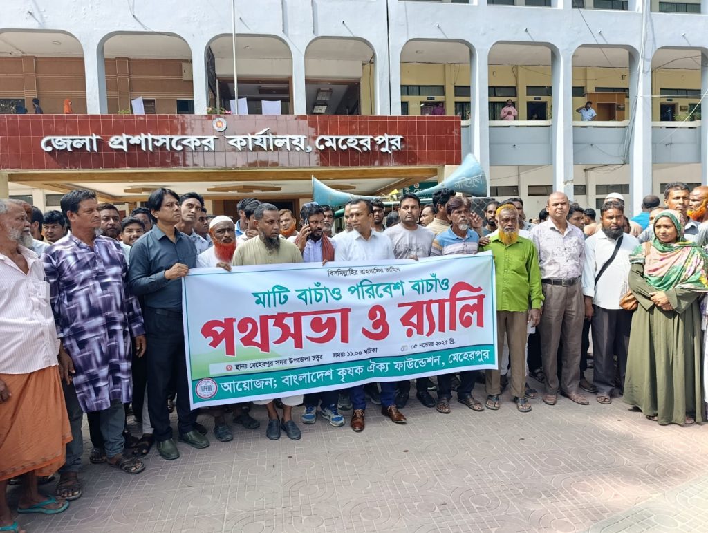 বাংলাদেশ কৃষক ঐক্য ফাউন্ডেশনের আয়োজনে “মাটি বাঁচাও, পরিবেশ বাঁচাও” পথসভা ও র্যালি অনুষ্ঠিত- মেহেরপুর সদর